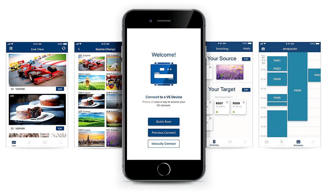 Gerencie e controle com facilidade qualquer VE8900/VE8950/VE8952 e simplifique as operações com o aplicativo VE8900/VE8950 Control. Esse aplicativo móvel oferece acesso direto ao VE Manager, que permite visualizar, monitorar e controlar fontes de vídeo, além de manter você atualizado sobre o cronograma de exibição e atualizações do sistema.